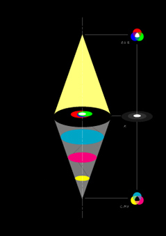 C・M・Yに,クランクに追行する作用の高まりの,軸を揃えるように重なる深遠なクロに,R・G・Bに重なるスポットライトの反作用は,照らし拡げるように,希望の光が繰り返し,通過し上昇することで胸の痞えが洗われるように取り除かれる。という気持ちなところからの作品(図)です。